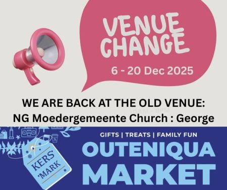 The Outeniqua Christmas Market will be held at the NG Moedergemeente Kerksaal in George. The market will run daily from 9h00 – 18h00, offering a festive experience with artisan crafts, food, and live music. Entry is free.