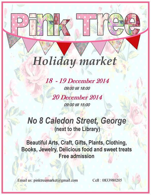 The Pink Tree Christmas Market is BIGGER and BETTER. Open 18 to 19 December from 09:00 to 18:00 and 20 December from 09:00 till 15:00. Many first-time exhibitors will be showcasing their unique products in our pop-up-shop which will be hosted in a brand new section. There will be stunning jewellery, plants, books, food, clothing and home-ware to tease your eyes, with sweet and savoury eats to tantalise your taste buds. Credit card facilities available! Presbyterian Church Hall in Caledon Street.