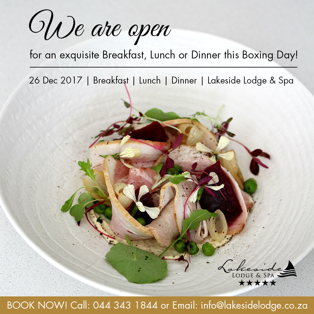 Commemorate National Braai Day on the 24th of September 2017 at Lakeside Lodge & Spa. Take in the views of the serene Swartvlei Lake as you enjoy a traditional spit braai menu prepared by executive chef Kelly-Anne Pietersen.