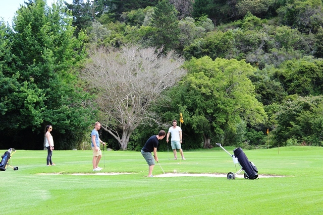 Outdoors – Swimming pool, 9-hole mashie golf course, walking and cycling paths, grass volleyball, croquet, swing ball.