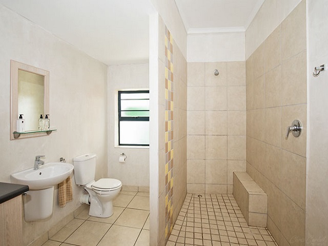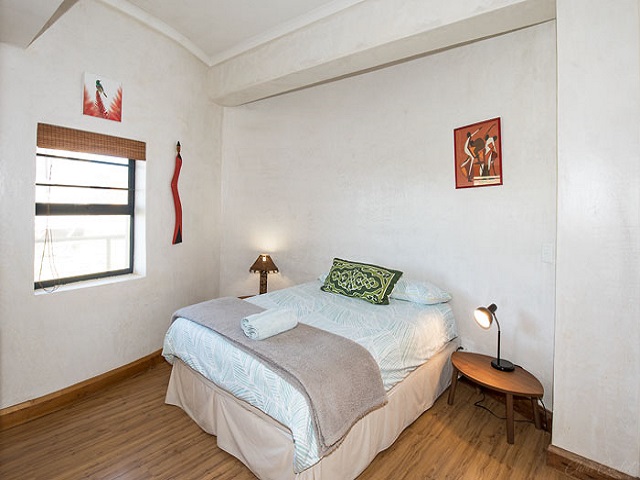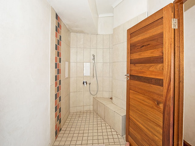 Bedroom 3: Queen size bed. Spacious en-suite with open-air shower. Ample built-in cupboards. Garden views. Wheel-chair accessible.