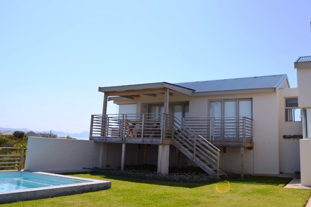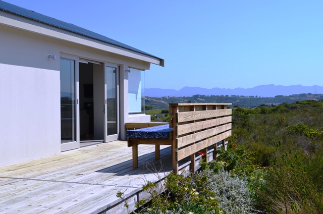 Outdoors – Spacious fynbos-facing undercover balcony with table, chairs & BBQ/braai. Direct access to garden and pool.Sea-facing patio on opposite side of the house.