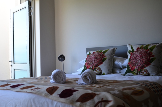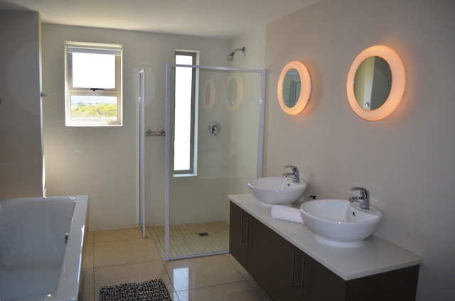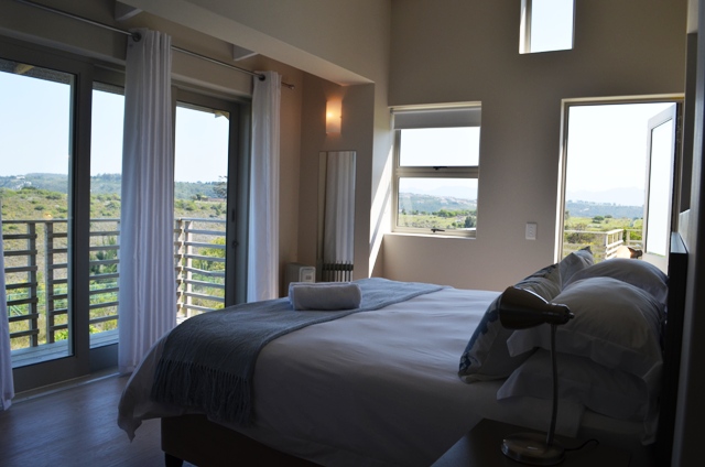 Main Room: King size bed. Open-plan bathroom with bath and shower. Separate toilet. Private patio. Front of house with unsurpassed fynbos and farmland views. Door leading into garden.