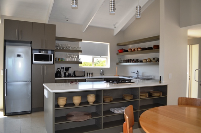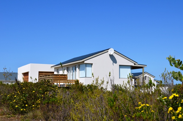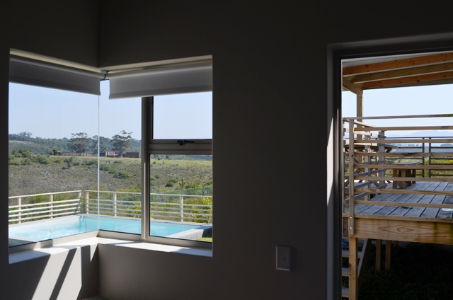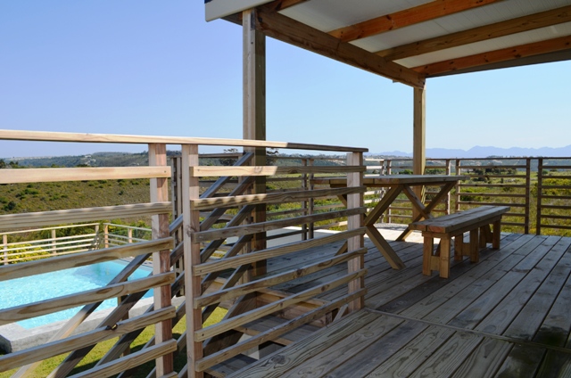 This holiday house offers privacy and exclusivity with a swimming pool set in landscaped gardens as well as an undercover balcony with BBQ/braai and uninterrupted views over the fynbos and farmland. On the opposite side is an open-air deck with panoramic views of the Ocean and Outeniqua Mountains.