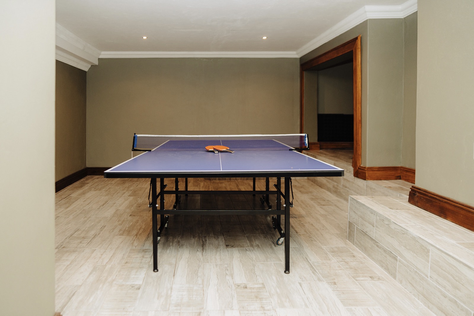 Uncapped wifi. Smart flatscreen TVs. Full inverter system for loadshedding. Indoor and outdoor seating arrangements. Indoor and outdoor dining. Indoor wood-burning fireplace. Writing desk. Baby cot. High chair. Gas stove top. Air fryers. Washing machine, dishwasher and tumble dryer. Gas BBQ/Braai. Automated garage parking. Games room with ping-pong table. Enclosed garden. Alarm with armed response.