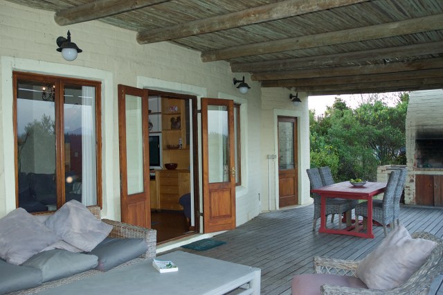 Taaibos Cottage: Two bedrooms, both with doors leading out onto the undercover patio. Sleeps max 5. Master bedroom with Queen size bed, second bedroom with 3 single beds. Separate bathroom with bath and shower. Outdoor shower. Lounge with flatscreen TV with DStv and doors opening onto patio. Fully equipped kitchen with 5 seater dining table. Private undercover patio with built-in BBQ/Braai, dartboard and comfortable couches. Patio leads onto gardens. Panoramic forest and Outeniqua mountain range views.