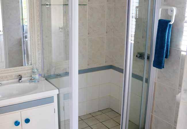 Bedroom with Queen bed (Twins upon request). Ample cupboard space. Overhead fan. Separate bathroom with shower.