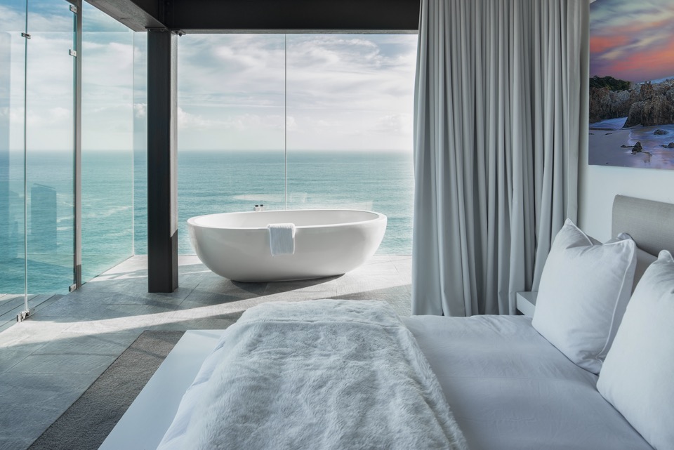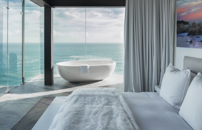 Architecturally designed and fitted out to the highest specification, this triple-storey, light-filled and very spacious Exclusive Pezula Holiday Villa has much to offer the discerning traveller. Meander along the pathway through the fynbos, down to a private beach, alternatively enjoy a sundowner in the jacuzzi with full sea views, read a book on the sundeck at the edge of the cliffside or simply laze next to the 36-meter infinity swimming pool. Heaven Can Wait will fulfil and exceed your heart’s desires.