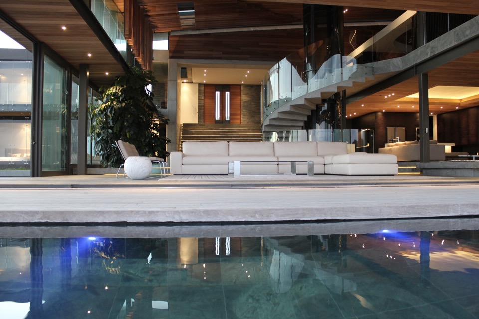 Lounge – Lounge with indoor gas fireplace, sliding doors open onto the pool deck. Additional and separate TV lounge, with surround sound. Full sea views.