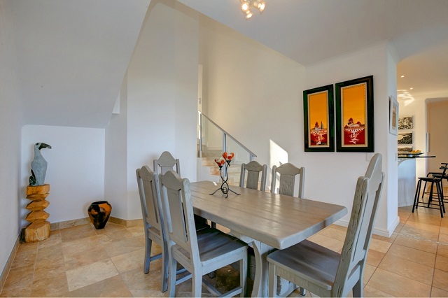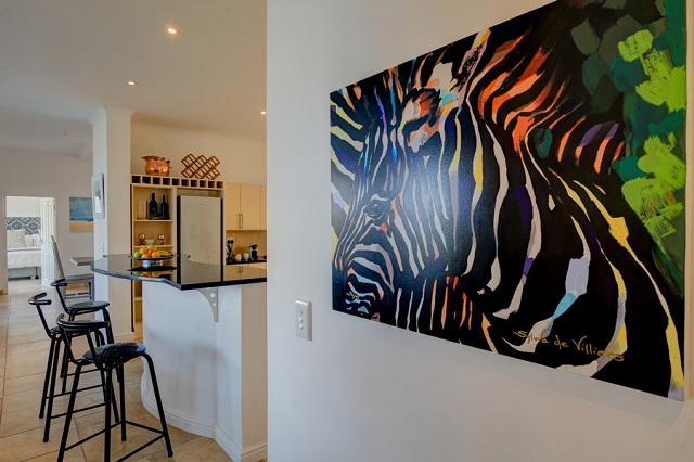 This double-storey property offers two separate accommodation units which can either be booked independently or together sleeping max 10 in absolute comfort and style. Each apartment is equipped with top quality fittings, extra length beds, original artwork adorning the walls and kitchens fully equipped for self-catering purposes. There are private Weber gas BBQ/braai facilities on the respective balconies, a vantage point from which to enjoy the breathtaking views that this property is famous for. Add ons include full package DStv and uncapped Wifi.