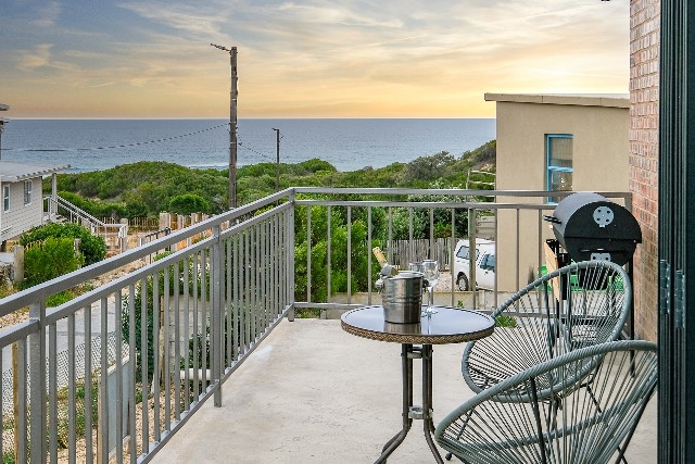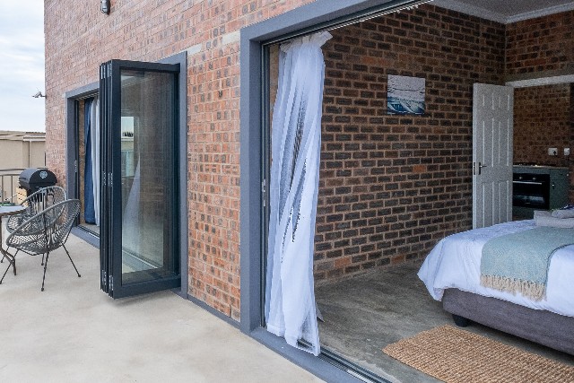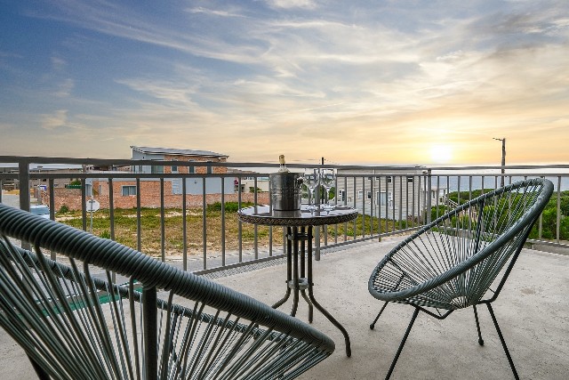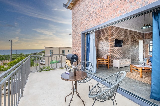 Outdoors – Sea-facing balcony with 2-seater table and chairs. Portable BBQ/Braai. Fully enclosed yard.