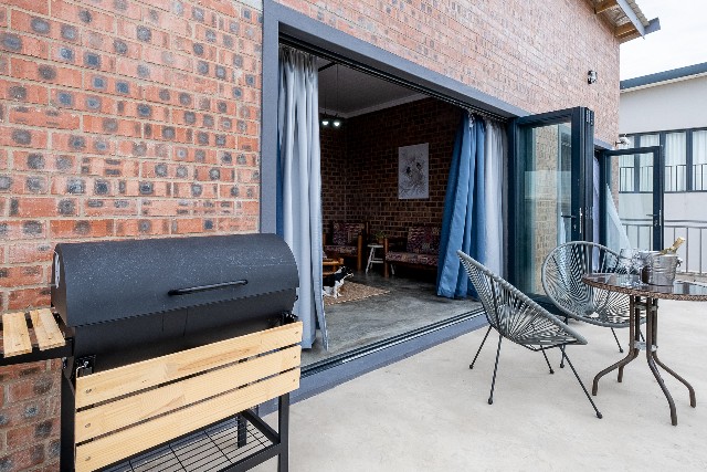 Additional house features a smart TV in the lounge, bar counter dining chairs at the kitchen counter, uncapped wifi, outdoor dining table and portable BBQ/Braai on the balcony, as well as an alarm with armed response. There is a washing machine in the garage.