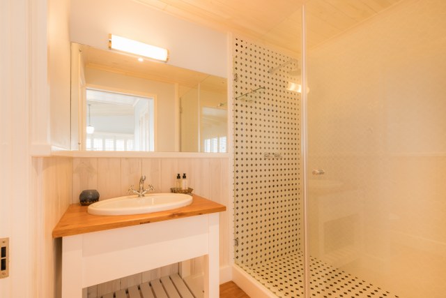 Bedroom 2: Downstairs. Queen size bed. Open-air bathroom with bath and seperate shower. Enclosed toilet. Walk-in cupboards. Sliding door opens onto deck with jacuzzi.