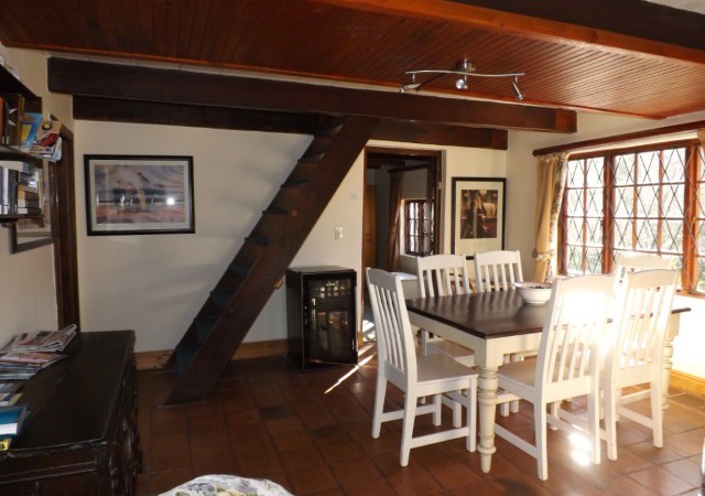 Birdsong House: Farm-style, double-storey unit that sleeps 10. Ground floor: Main bedroom with Queen size bed, Single bed and en-suite bathroom with shower only. Second bedroom with Double bed. Third bedroom with Single bed. Separate bathroom with shower only. Lounge area with flat screen TV, DStv, DVD player and open fireplace. Dining table seating 6. Opens onto terrace. Fully equipped kitchen with large gas oven, fridge/freezer and microwave. Opens onto terrace. Top Floor: Fourth bedroom with Twin beds. Fifth bedroom with Twin beds. Separate bathroom with shower only. Outdoors: Sun-filled terrace and ‘L’ shape entertainment area with table and chairs. Built-in BBQ. Views over valley and forest.