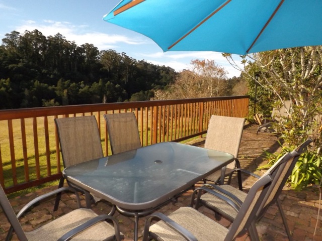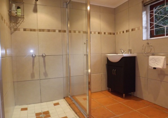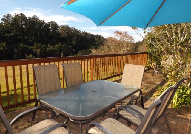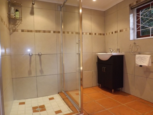 Valley Room: Bed&Breakfast. Annex to the main house. Queen size bed and Single bed. En-suite bathroom with shower only. Flat screen TV, DStv. Basic tea/coffee-making facilities, bar fridge and microwave. Opens onto undercover terrace with built-in BBQ and dining table. Overlooks dams, garden and forest.