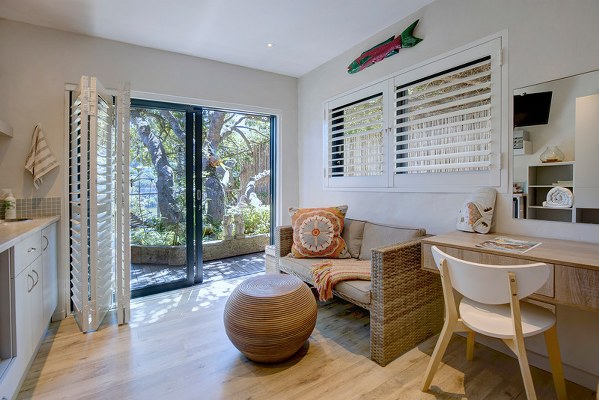There are 3 self-contained suites sleeping 10 people in luxury. All suites are open-plan. Should you wish to book the units together, the doors on the patios are interleading.