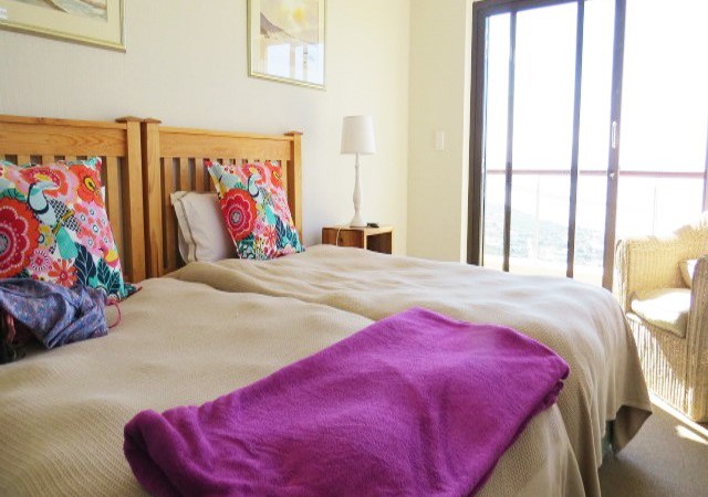 Bedroom 4: Two ¾ beds. Ceiling fan. Ample cupboard space. Doors open onto patio with sea, swimming pool and garden views.