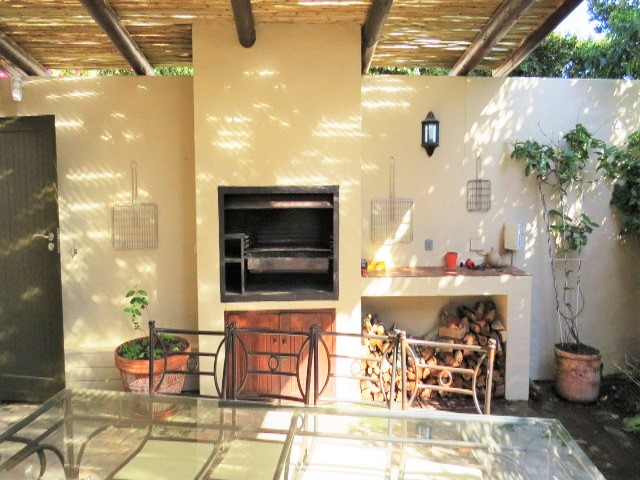 Outdoors – Swimming pool. Built-in BBQ/Braai. Enclosed garden. Outdoor shower. Large sheltered patio with comfortable seating arrangements and surround sound system. Double garage with direct access into the house. Washing line. Courtyard.