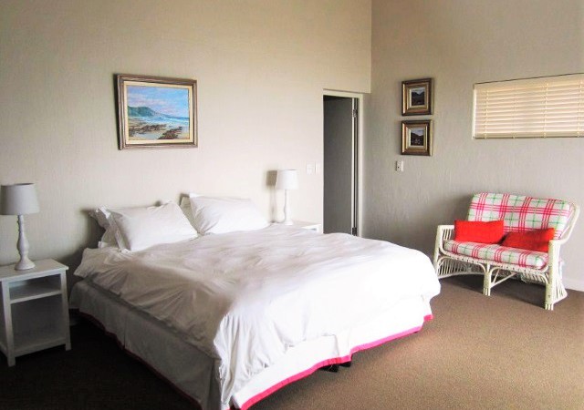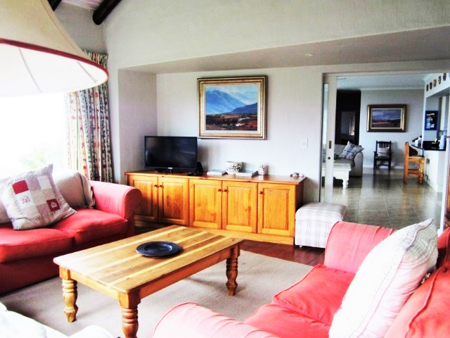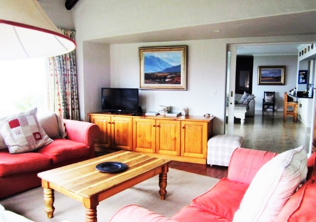 TV Room – Comfortable couches. Flatscreen TV. DVD Player. CD Player. Surround Sound System. Double entrance. Doors open onto lush gardens with sea, swimming pool and garden views and the other door opens onto sheltered BBQ/Braai area.