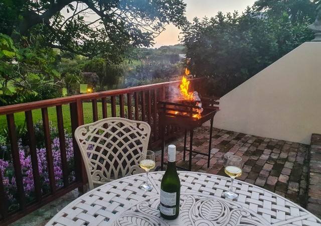 Outdoors – Lush, terraced gardens. Patio with seating arrangements. Built-in BBQ/Braai. Lagoon and sea views. On-site parking.