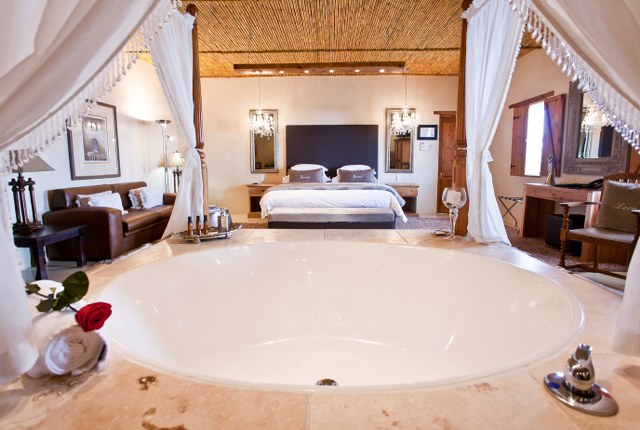 Don Carlo – Two separate rooms, king size bed on the ground level and 3 single beds in the loft room, interconnected by a staircase with access to a private balcony. Don Carlo is individually styled to complement your true South African stay. The shared bathroom consists of a spa bath and separate walk in shower.