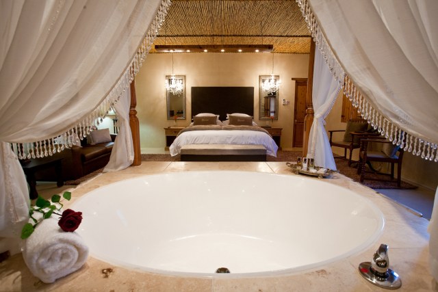 Azapa – Open plan, beautiful open Roman bath in front of the comfortable king size bed as well as a separate shower.