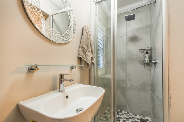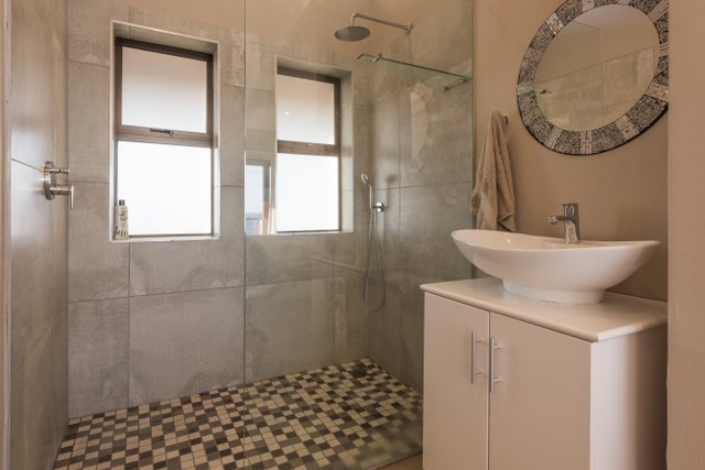 Tergniet Beach Villa is a triple-storey Garden Route Pet-Friendly Holiday House comprising six bedrooms, all en-suite, accommodating up to 12 people in absolute comfort and style. On the top level are three rooms, each opening onto a shared sea facing balcony with seating arrangements. The entrance level has another room, opening onto the garden-facing balcony with built-in BBQ/Braai whilst the two remainding rooms are on the ground floor level, part of the self-contained apartment. There is an additional guest bathroom with shower, serving as a seventh bathroom.
