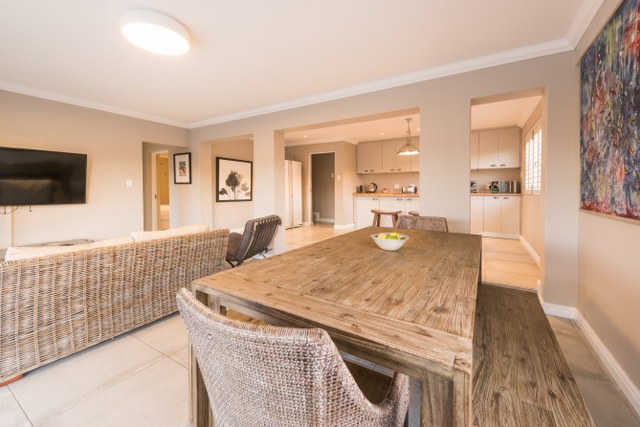 Dining – Open-plan with lounge. 6-Seater dining room table. Glass sliding doors opens onto an undercover patio. Garden views.