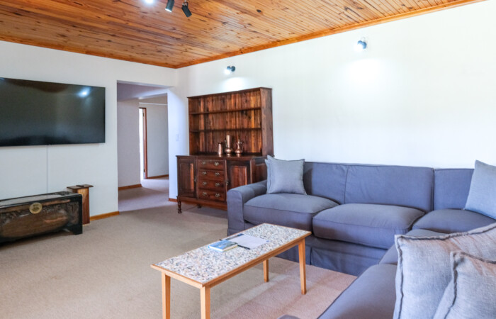 TV Lounge – With comfortable L-shaped couch. Smart TV. Opens onto enclosed sunroom.