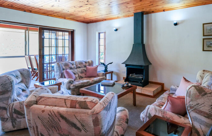 Lounge – Open plan with comfortable couches. Indoor gas-burning fireplace. Lagoon facing.