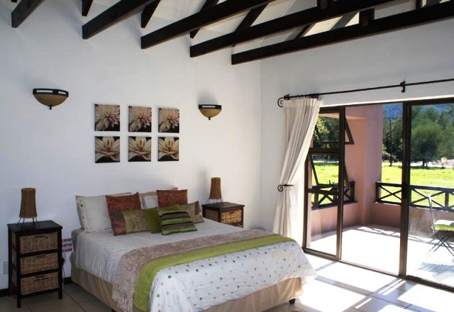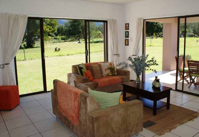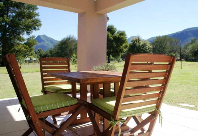 The Green House comprises of 2 bedrooms, 2 bathrooms, a sunny lounge opening onto private decks on either side, a modern and fully equipped kitchen, ample outdoor space with spacious fenced-in garden, on-site parking, fireplace, BBQ/braai facilities and undisturbed mountain views.