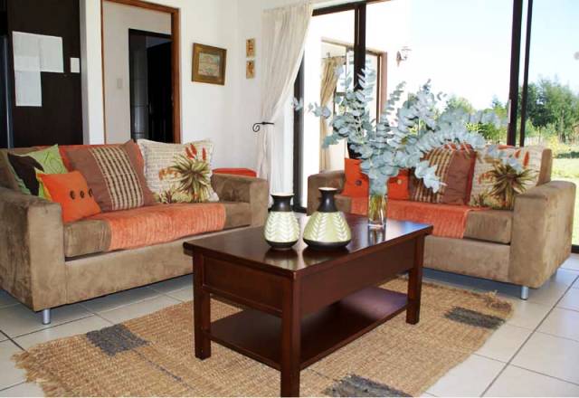 Living Area – Lounge with comfortable couches and wall-mounted flat-screen TV. Full DStv.
