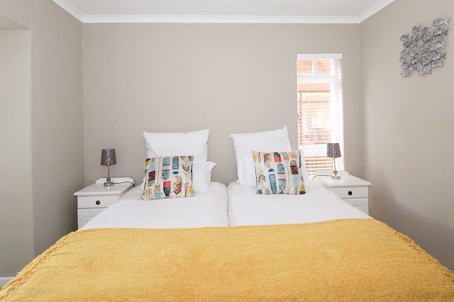 3rd Room: Twin beds. Ample cupboard space. Garden views. Portable heater/fan.