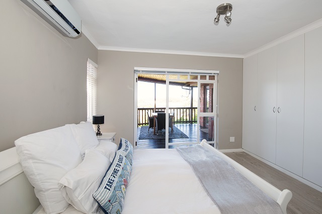 Living Area – Lounge with comfortable couches. Large flat-screen TV, DVD Player and Satellite/DStv. Desk. Doors open onto undercover balcony. Air con.