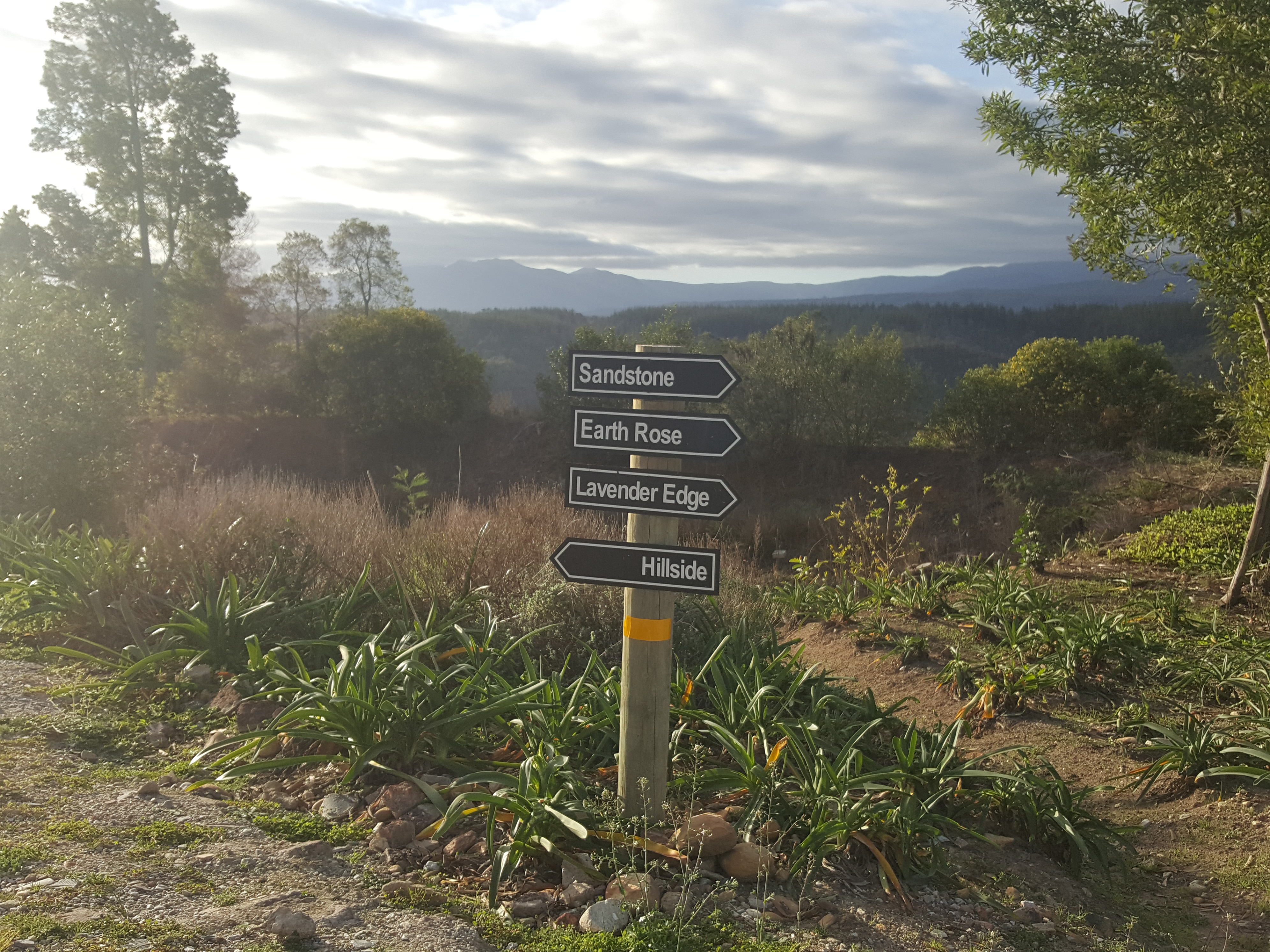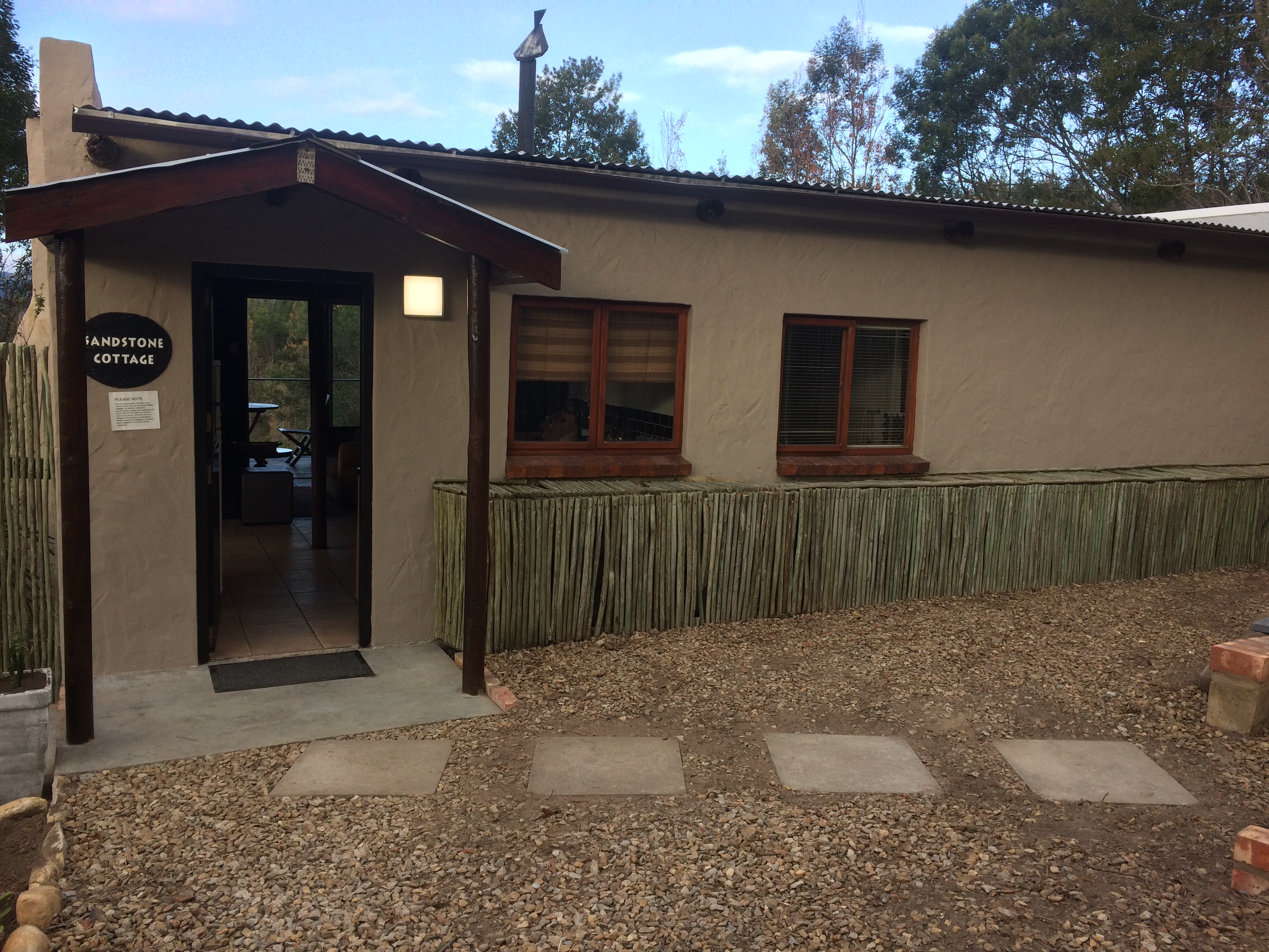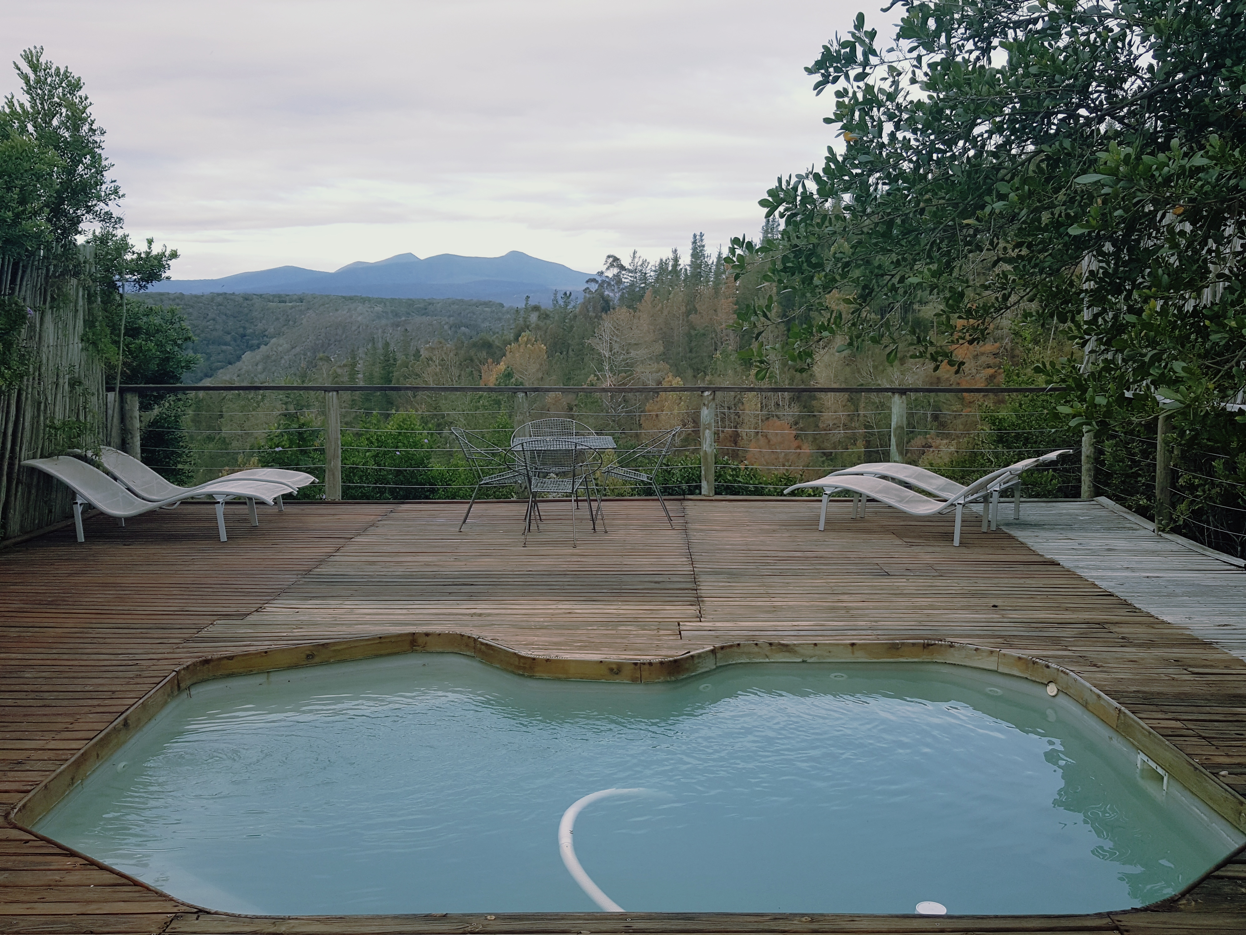 Forest Valley Cottages’ units are strategically positioned on this spacious private property with 2 honeymoon units ‘Glory Dawn’ (where we stayed on our first visit) and ‘Wild Iris’ (where we spent Sunday night) on the one side; ‘Sandtone’, ‘Earth Rose’ and ‘ Lavendar Edge’ on the opposite side – these 3 units are close by, great for a large group of family/friends travelling together. Hillside is set apart. There is a communal swimming pool with sunloungers and braai facilities for hot Summer days, also a walking path for those who are keen to get some exercise in-between all the chilling.