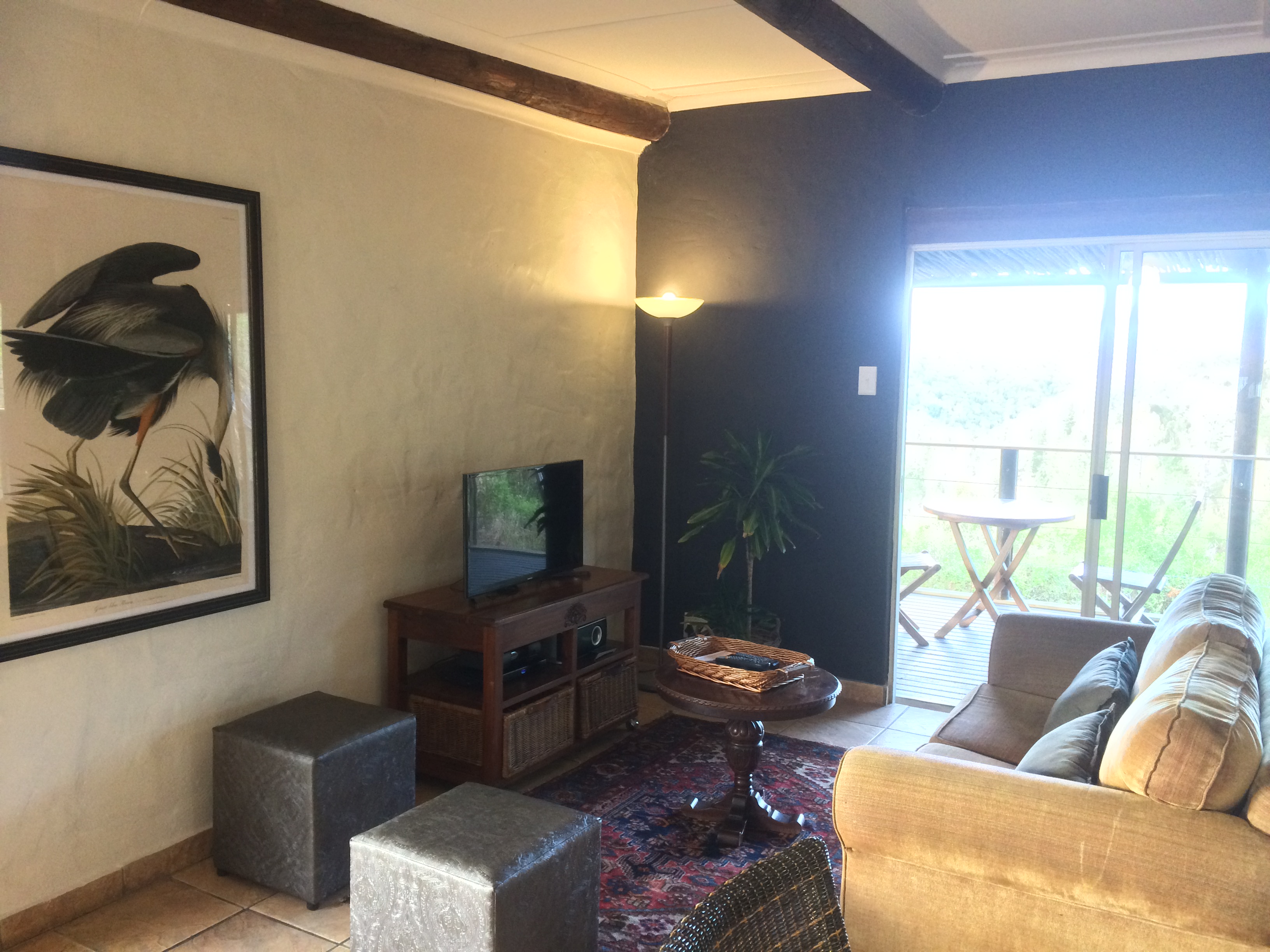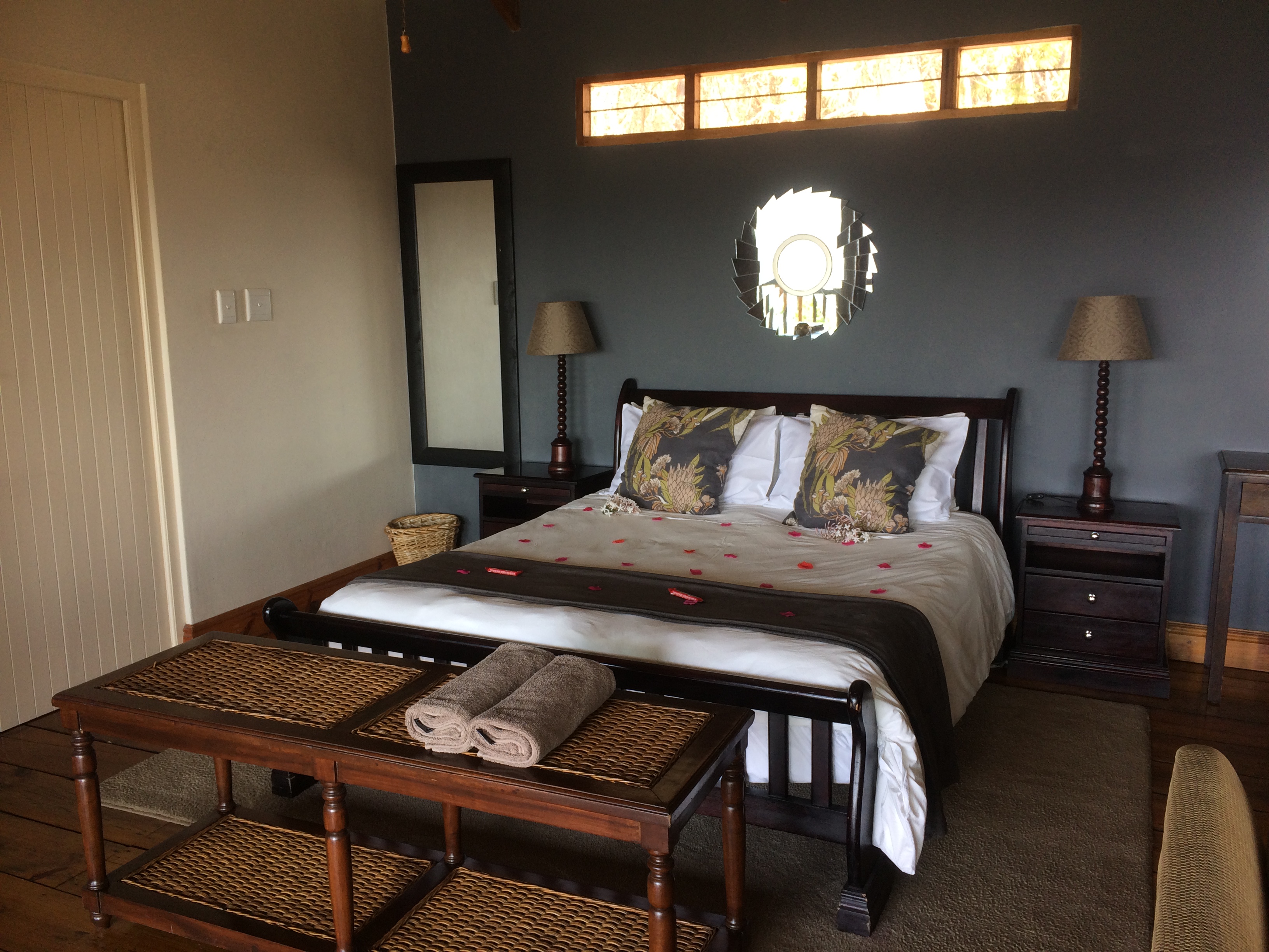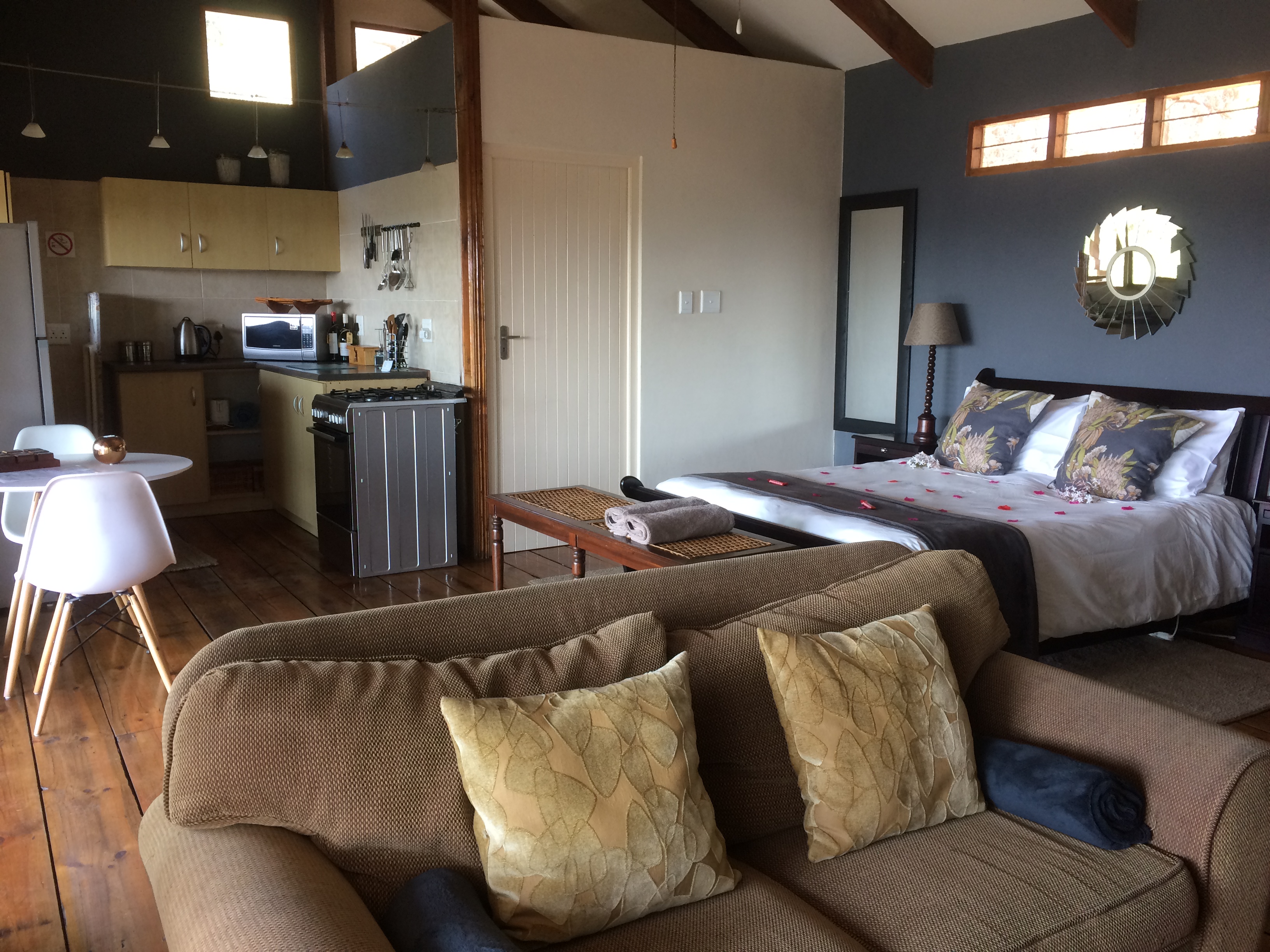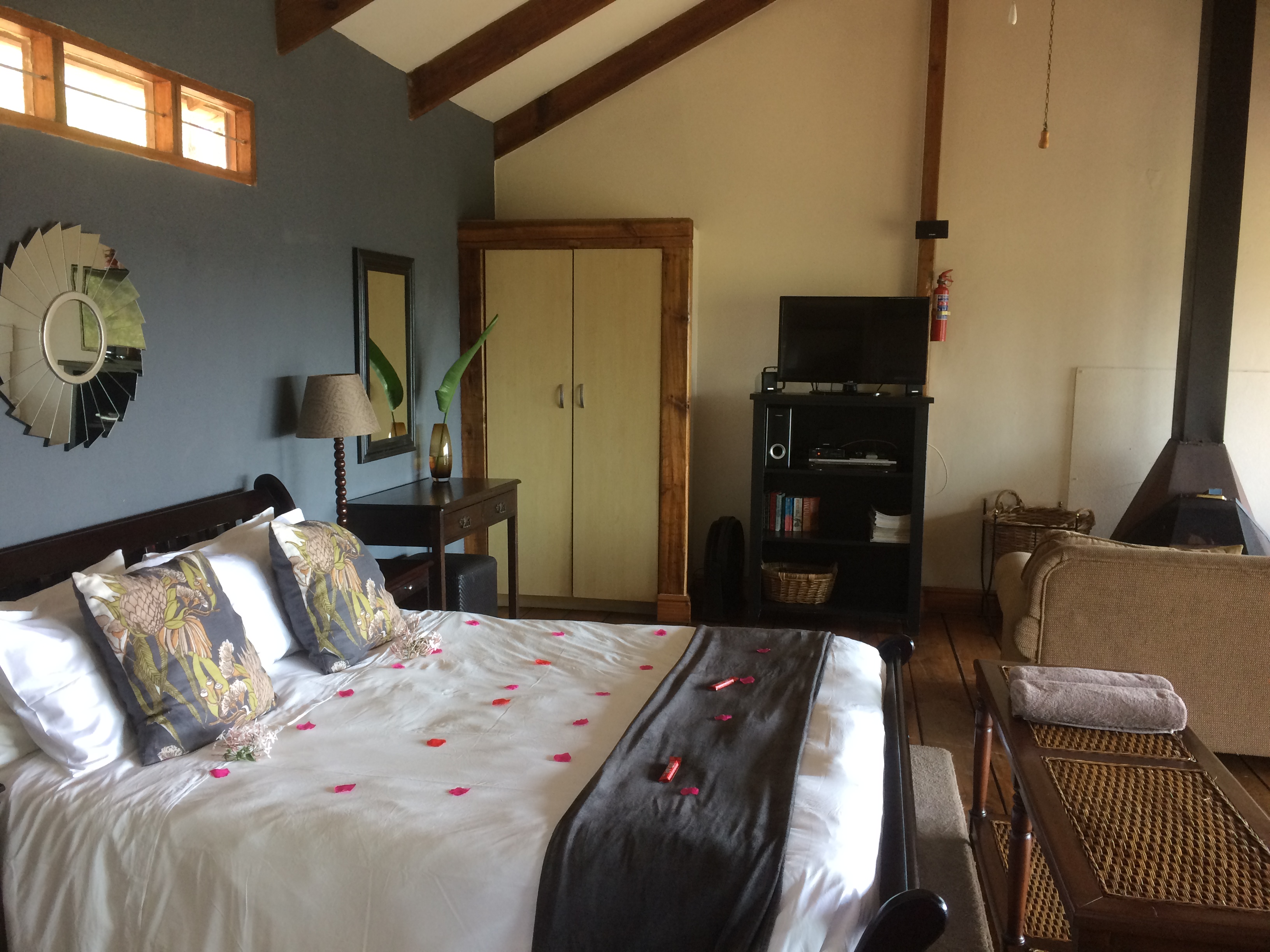 Forest Valley Cottages’ units are strategically positioned on this spacious private property with 2 honeymoon units ‘Glory Dawn’ (where we stayed on our first visit) and ‘Wild Iris’ (where we spent Sunday night) on the one side; ‘Sandtone’, ‘Earth Rose’ and ‘ Lavendar Edge’ on the opposite side – these 3 units are close by, great for a large group of family/friends travelling together. Hillside is set apart. There is a communal swimming pool with sunloungers and braai facilities for hot Summer days, also a walking path for those who are keen to get some exercise in-between all the chilling.