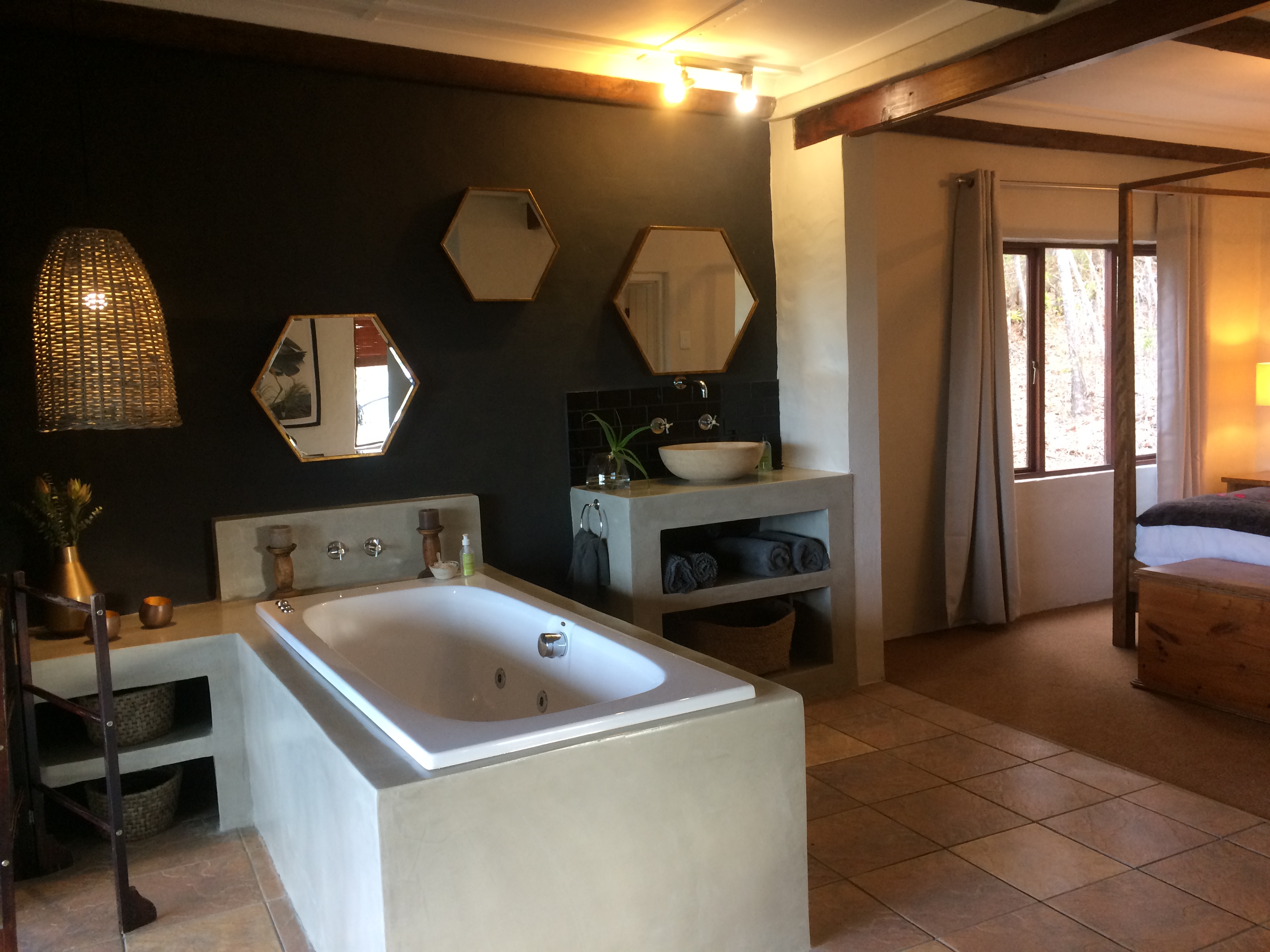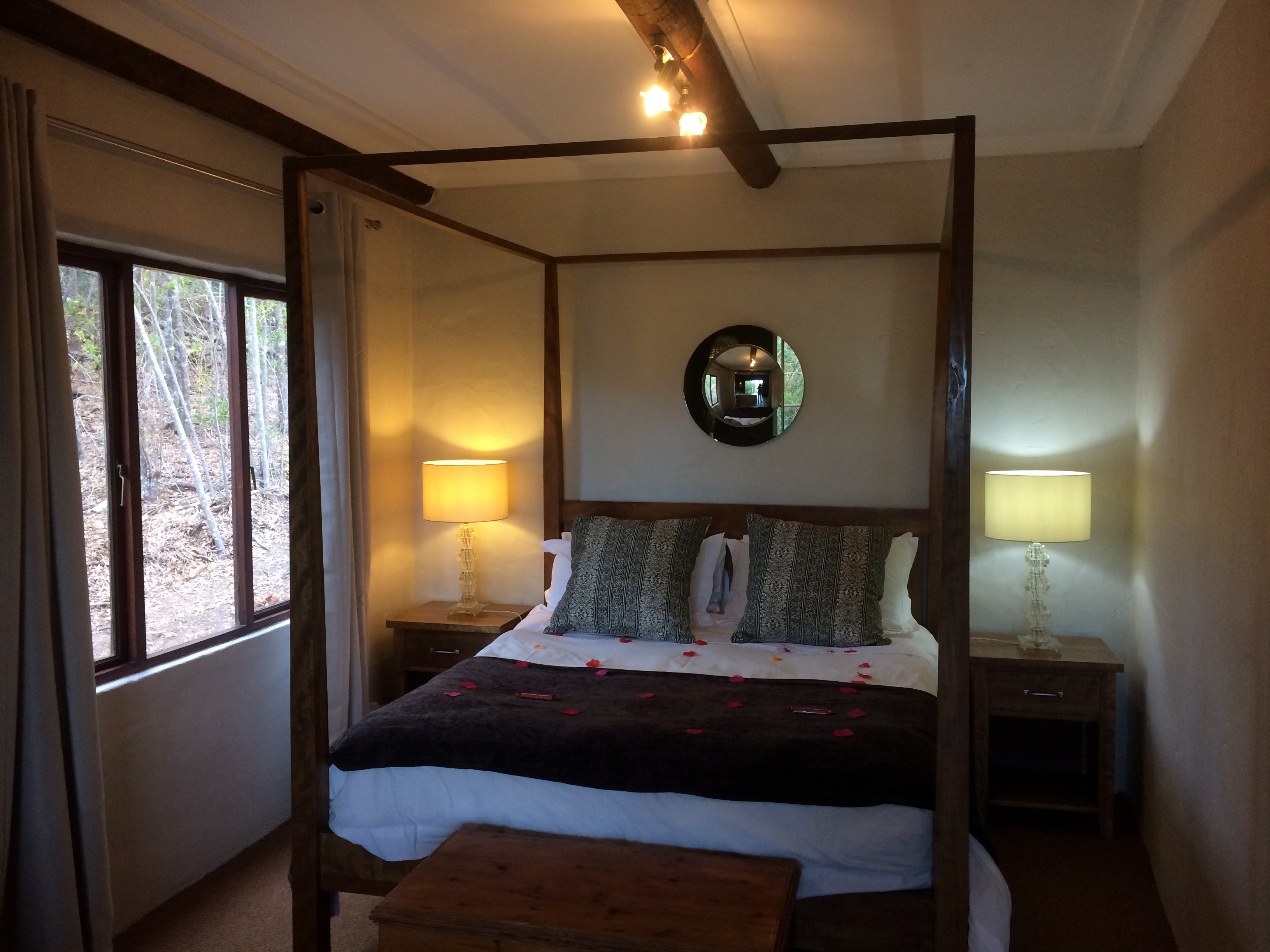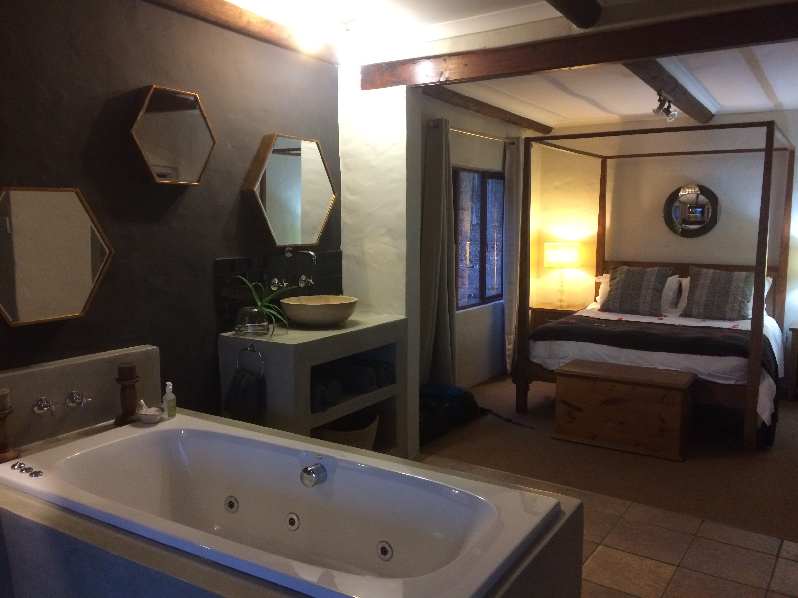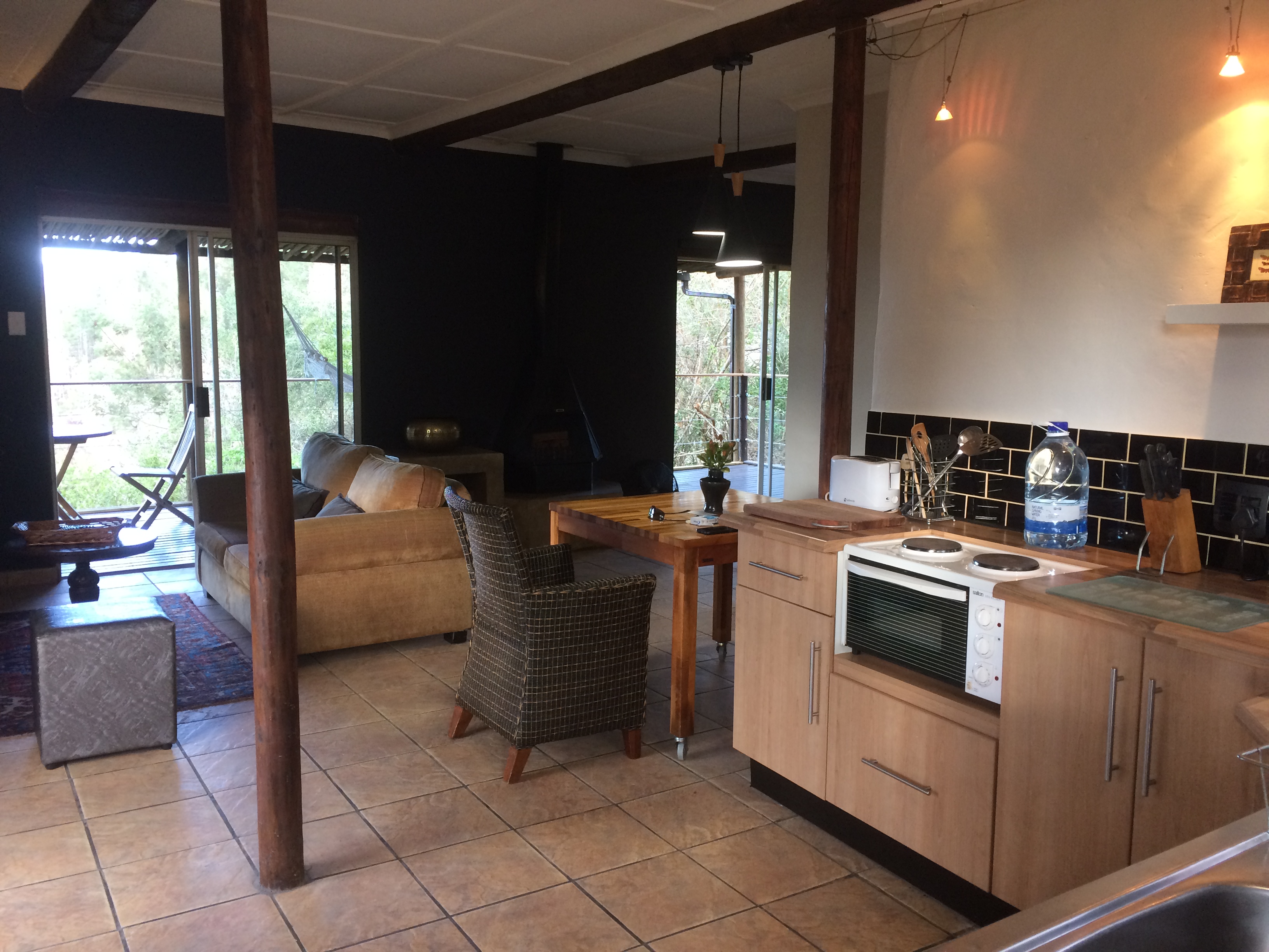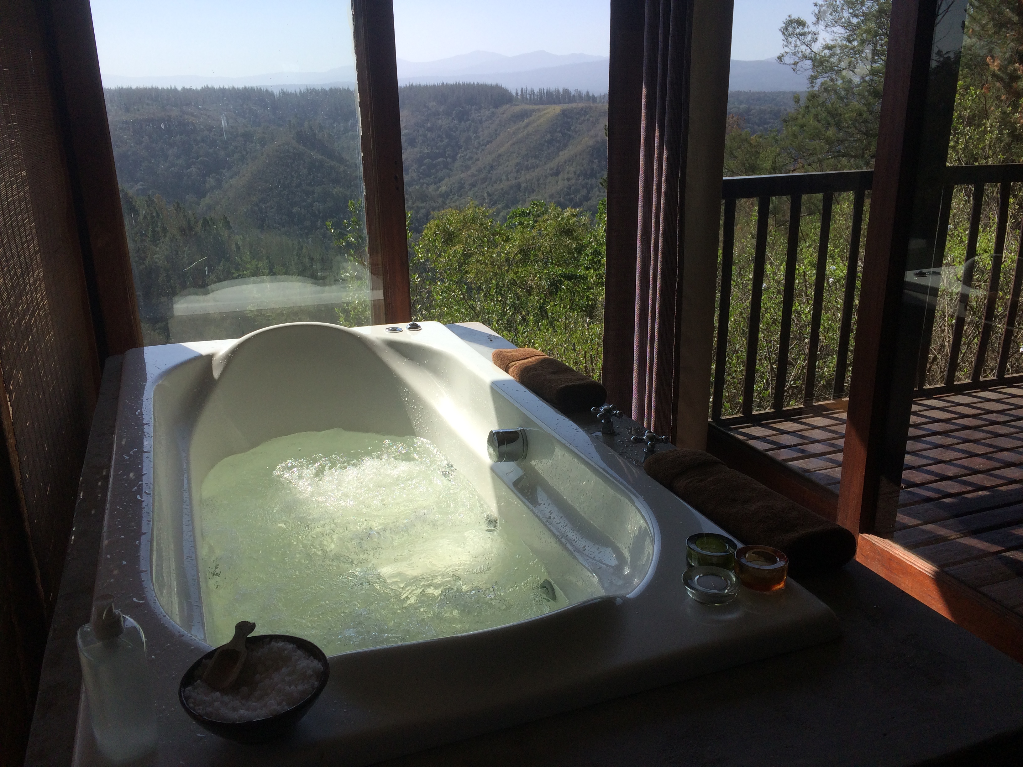The interior was fresh, clean and super comfortable; the style chic with a modern twist all whilst blending in with the natural environment. Casual luxury sums it up perfectly! Our favorite features included the four-poster bed and Jacuzzi spa bath, all with views as well as outdoor balcony with private braai and hammock. Bonus’ were the indoor fireplace and DStv – we even got to watch the South Africa vs Australia rugby match. Plus they service the units every day so no need to wash dishes or make up beds – oh joy oh bliss!