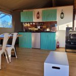 The tents are spacious, clean and very neat. There is a fully equipped kitchenette with all the basics for a most comfortable self-catering stay including a bar fridge, microwave and gas stove top. Every tent offers aircon, electric blankets and a wood-burning indoor fireplace, making it a year-around destination. During the Winter months, cozy up next to the fireplace with views of snowcapped Swartberg mountains in the distance; during the Summer months, keep cool with the assistance of the aircon and dips in the swimming pools nearby.
