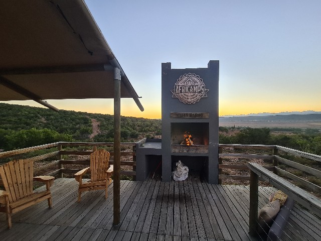 We soon lit the fire on our deck, opened the bottle of Rose and enjoyed the spectacular sunset from our unique vantage point. As the night sky darkened, it was soon brightened by the millions of stars that shine only as they so clearly do in the Klein Karoo followed the full moon which rose over the opposite hillside to which the sun a few moments ago set, shedding a light so bright that the entire AfriCamps became illuminated. We all shared an AH-HA moment, taking in the beauty that surrounded us.