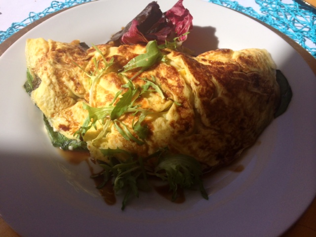 Choice between various hot breakfasts: I went with an Omellette-a-la-Queen (as I like to call it), stuffed with cream cheese, mushrooms and fried onion; my partner opted for their house-special Eggs Benedict which too was out of the world!